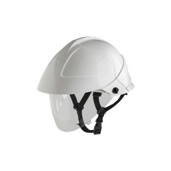 Casque industriel d'électricien. Pour les protections contre les chocs et qui permet un isolement efficace de la tête. Utile pour les travaux sur les courants alternatifs et sur métal en fusion. Protection du visage grâce à la visière.